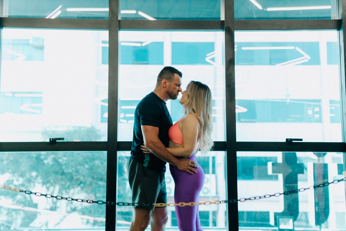 Esse ensaio pré-wedding com a cara do casal.... Com o tema "treinar na academia juntos e ter fé" Celebra a jornada física, emocional e espiritual dos noivos. É um testemunho do compromisso, da força e da confiança que compartilham, preparando-os para o próximo capítulo de suas vidas juntos - O casamento.